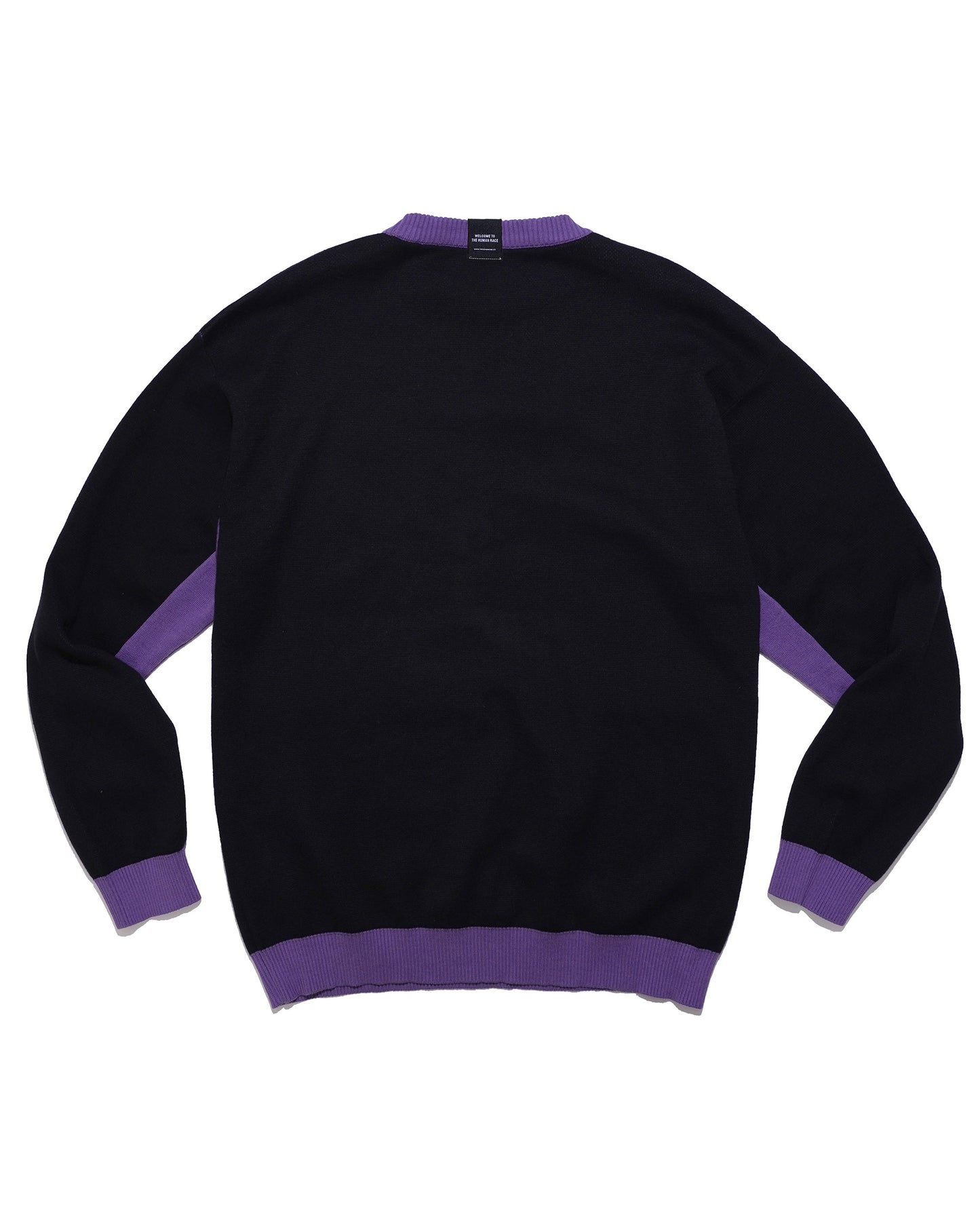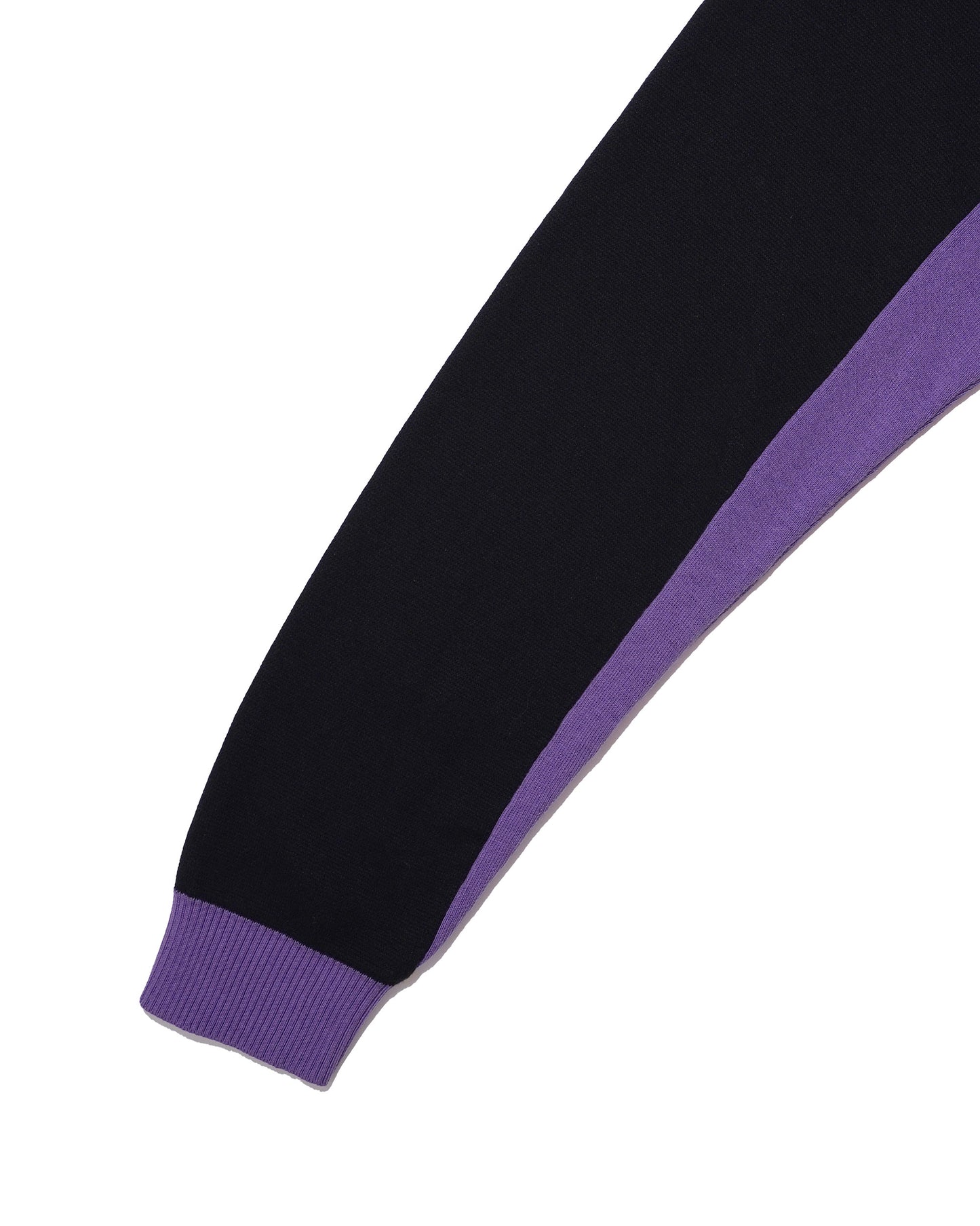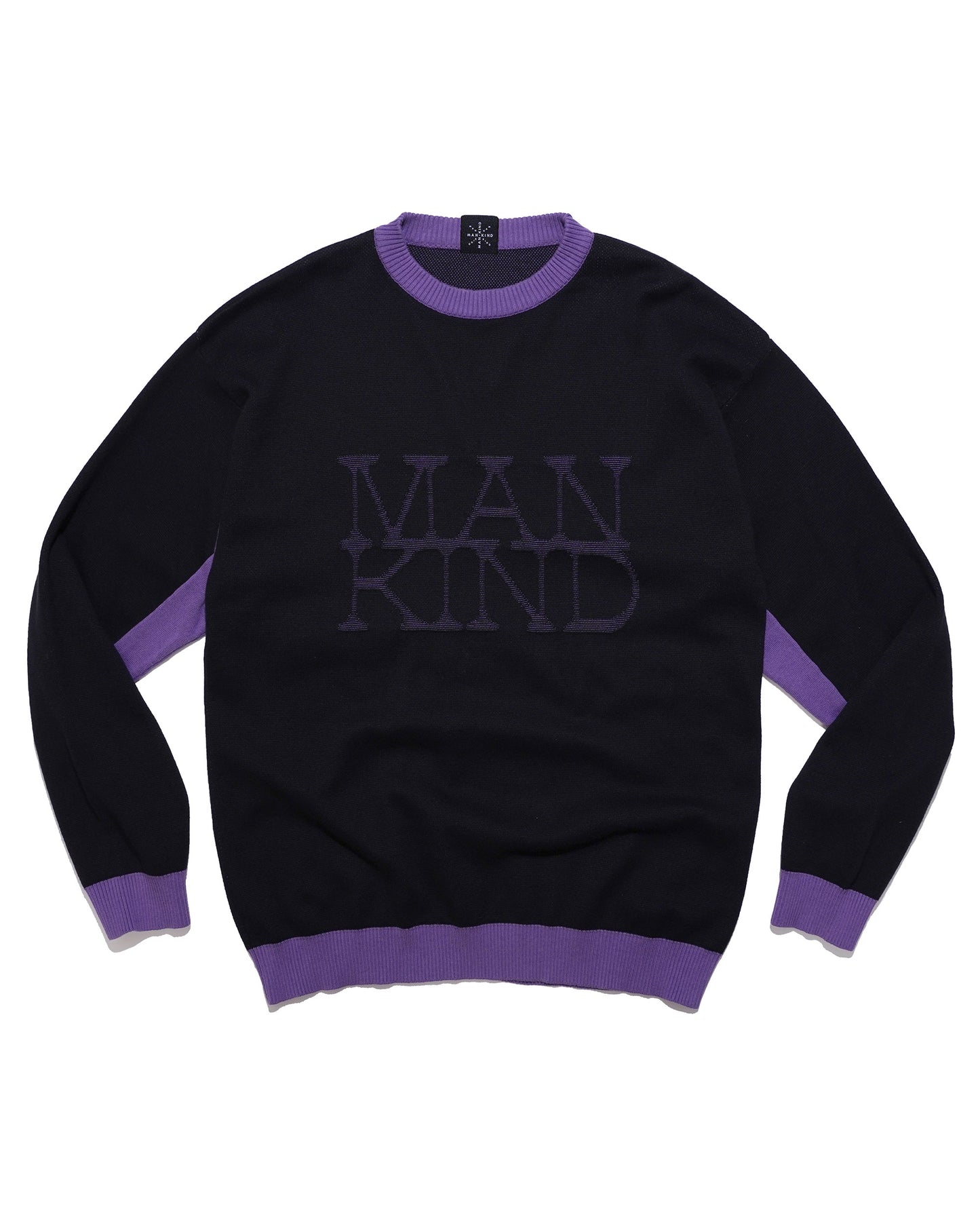 A refined essential with bold character, this MANKIND long-sleeve knit sweater blends comfort with effortless style. Crafted in a rich black base with deep purple accents on the collar, cuffs, and hem, it offers a striking contrast that elevates its minimal design.