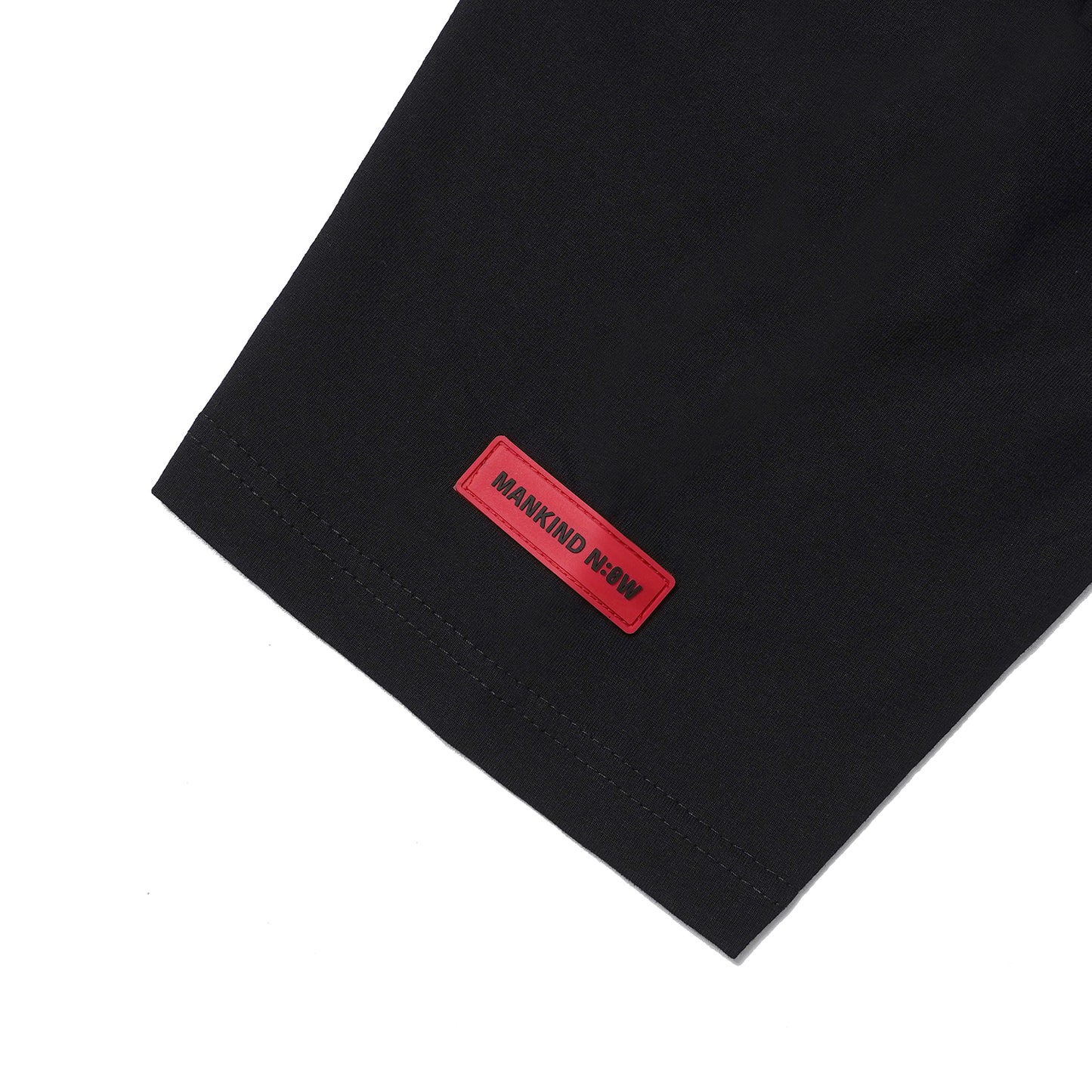 PRINTED ORIGINAL MANKIND N:0W GRAPHIC ON 100% HEAVYWEIGHT 205 GSM COTTON WITH DETAILED RUBBER PATCH ON SLEEVE